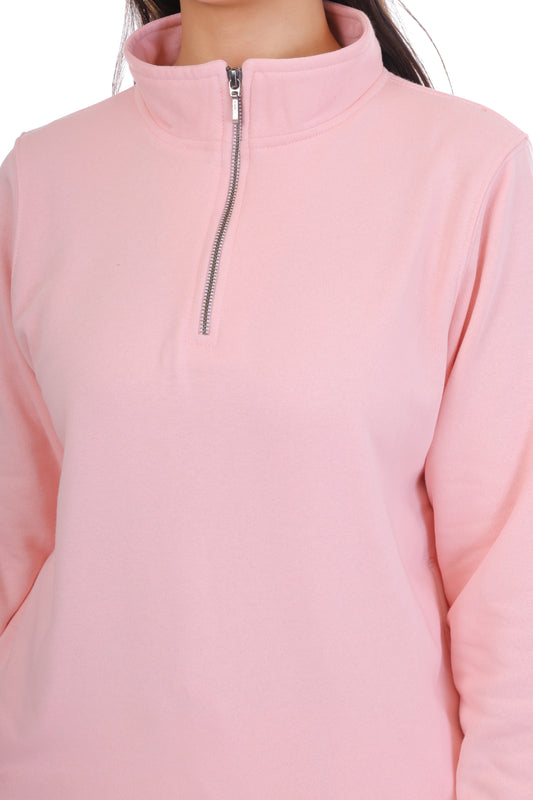 Light Pink Co-Ord Set for Women Half Zipper