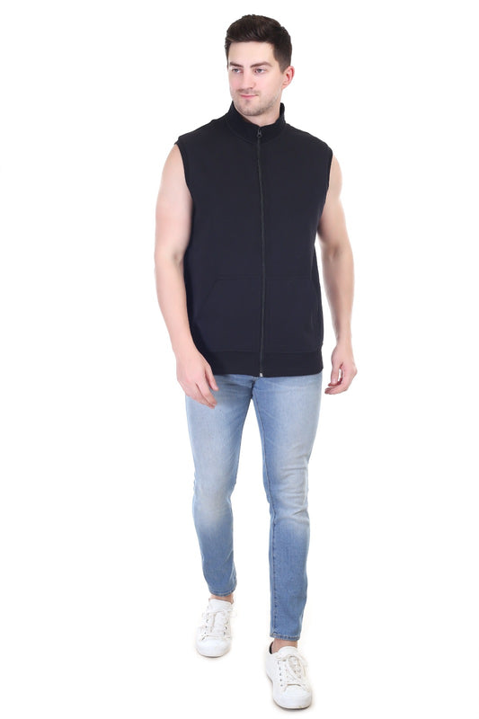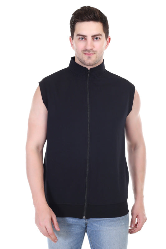 Men's Jacket Black Full Zipper Side Pockets Without Sleeves Collars
