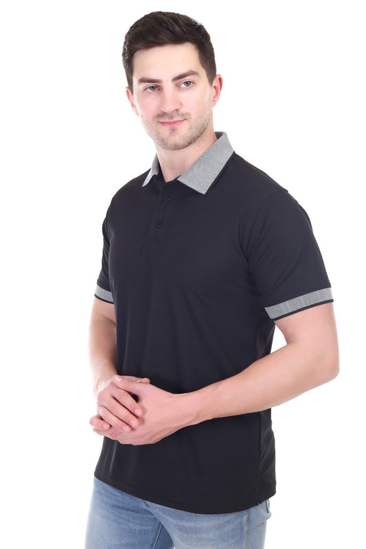 Men's Black Matty Polo T-Shirt Stretch Polyester Spandex Fabric