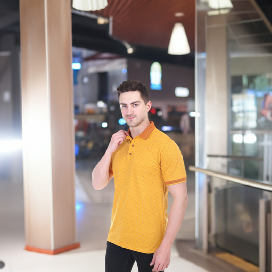 Cotton Polo Neck T-Shirt Mustard Full Printed